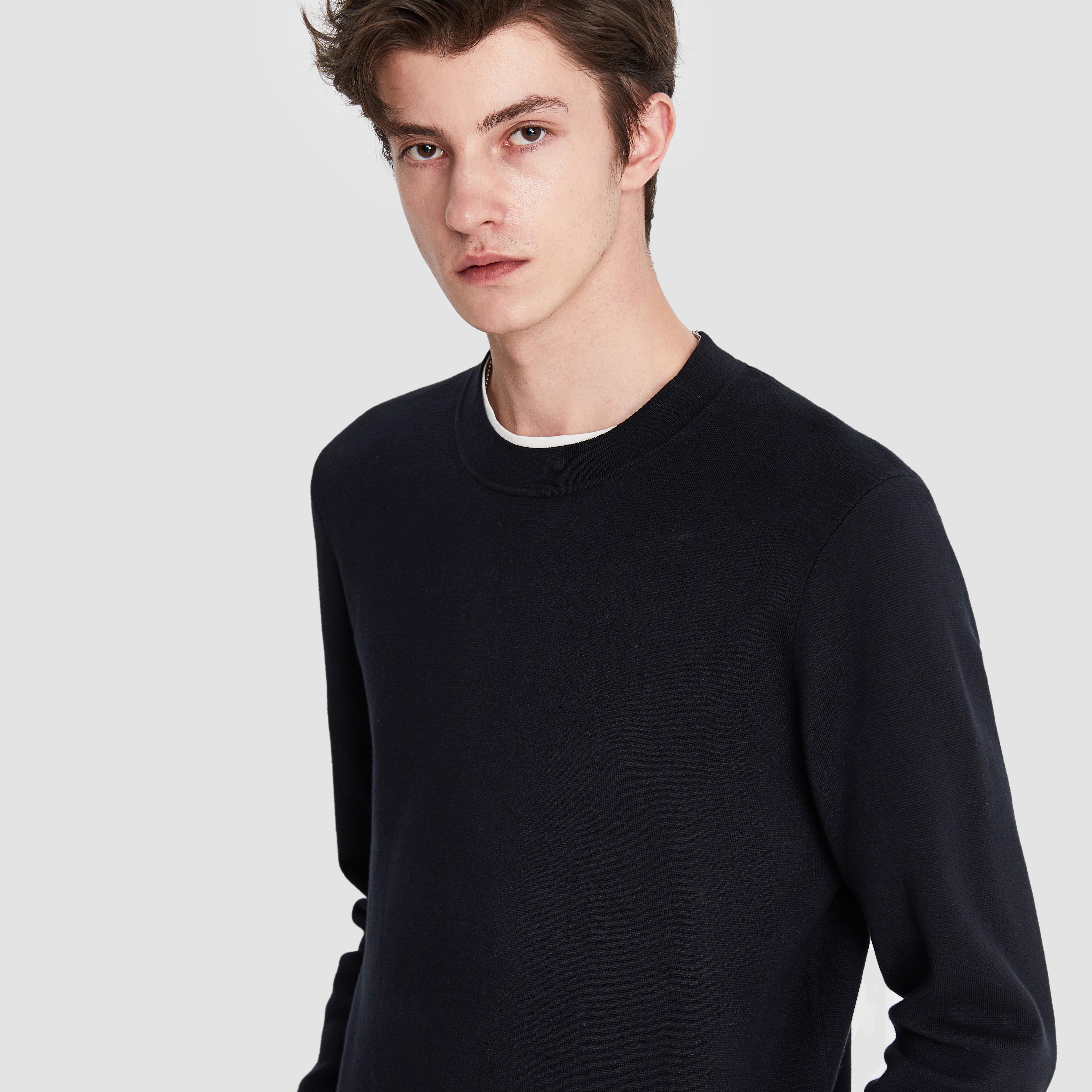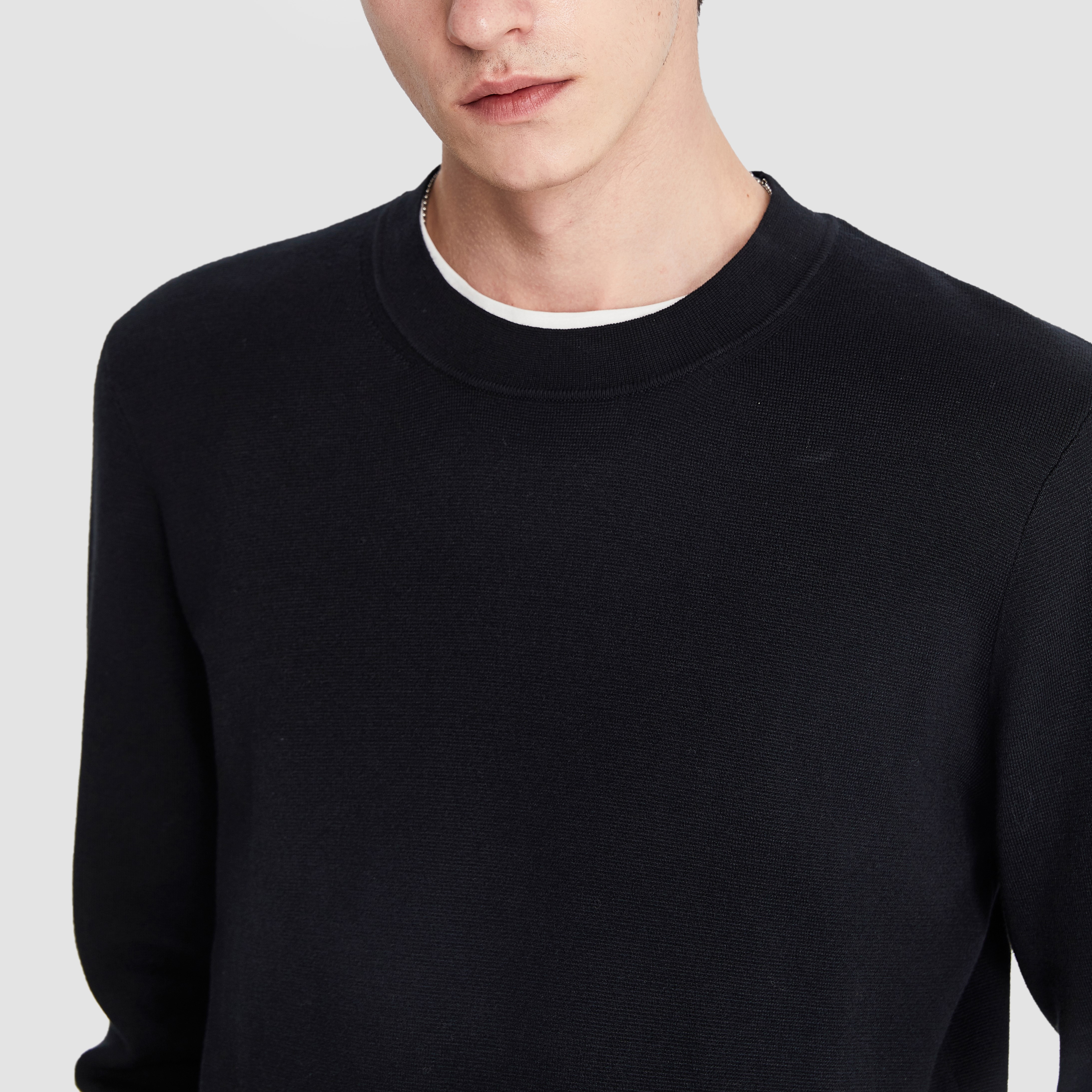 男士长袖挺括元零基础棉线衫黑色款