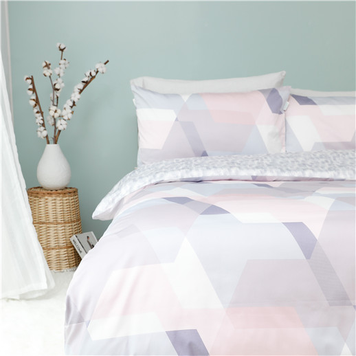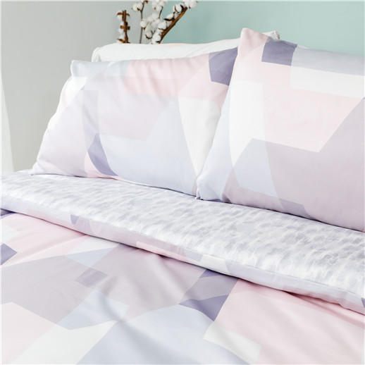 2020夏贡缎四件套-粉灰几何