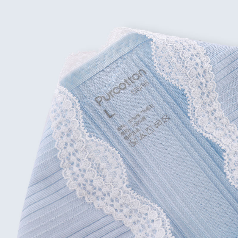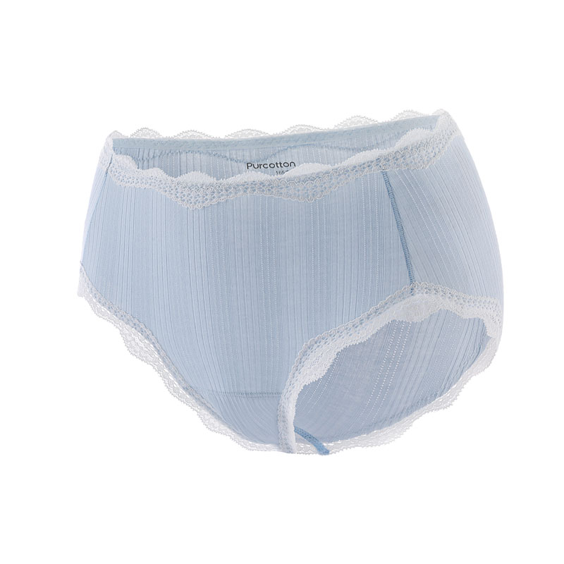 女士中腰三角内裤-罗纹蕾丝