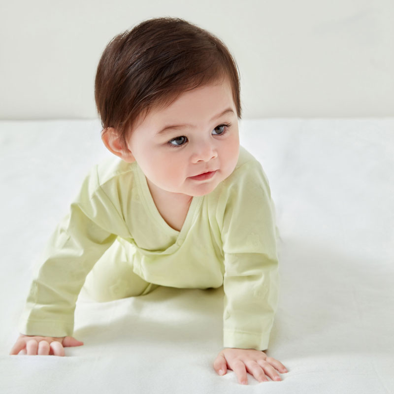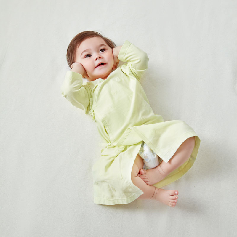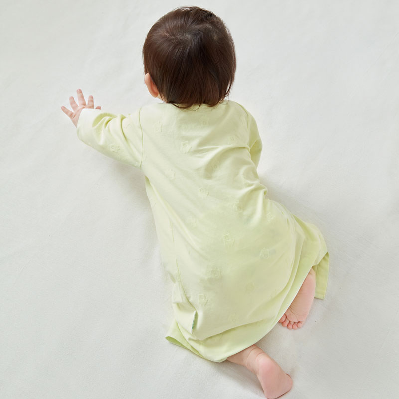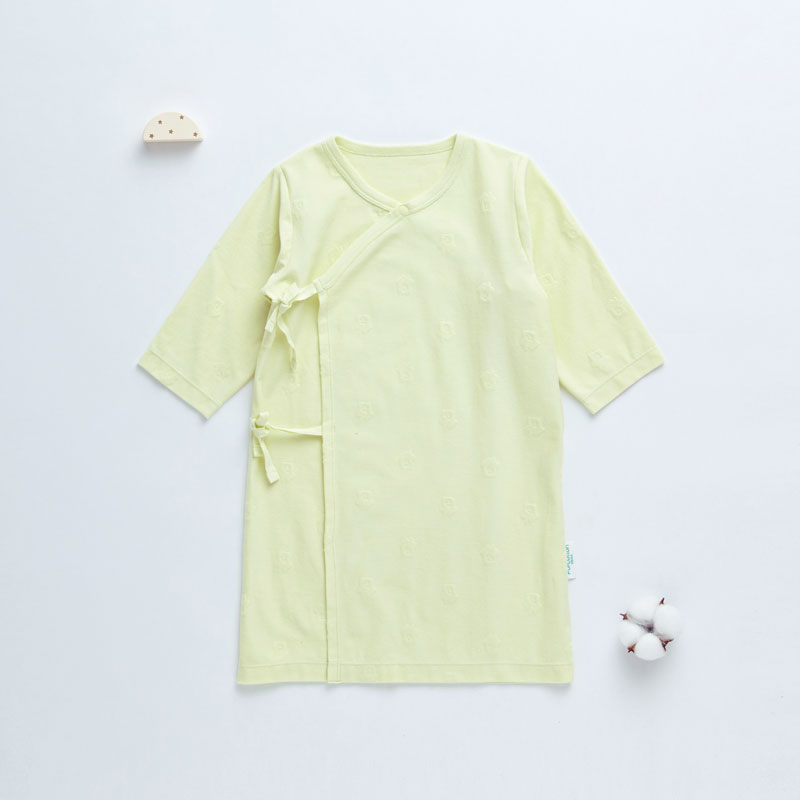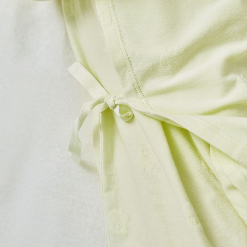 优质精梳棉针织提花面料,柔软、舒适、透气; 提花面料具有肌理感,整体清新淡雅;