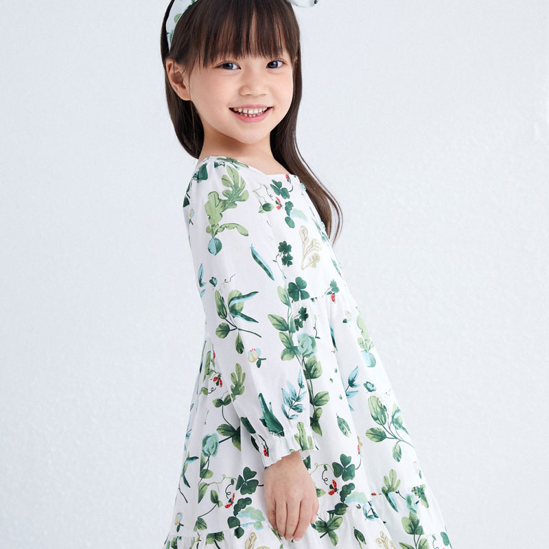 春意浓郁的印花设计,富有故事情节。柔软舒适面料,穿着灵动有活力。搭配精致可爱发带,甜美加满。